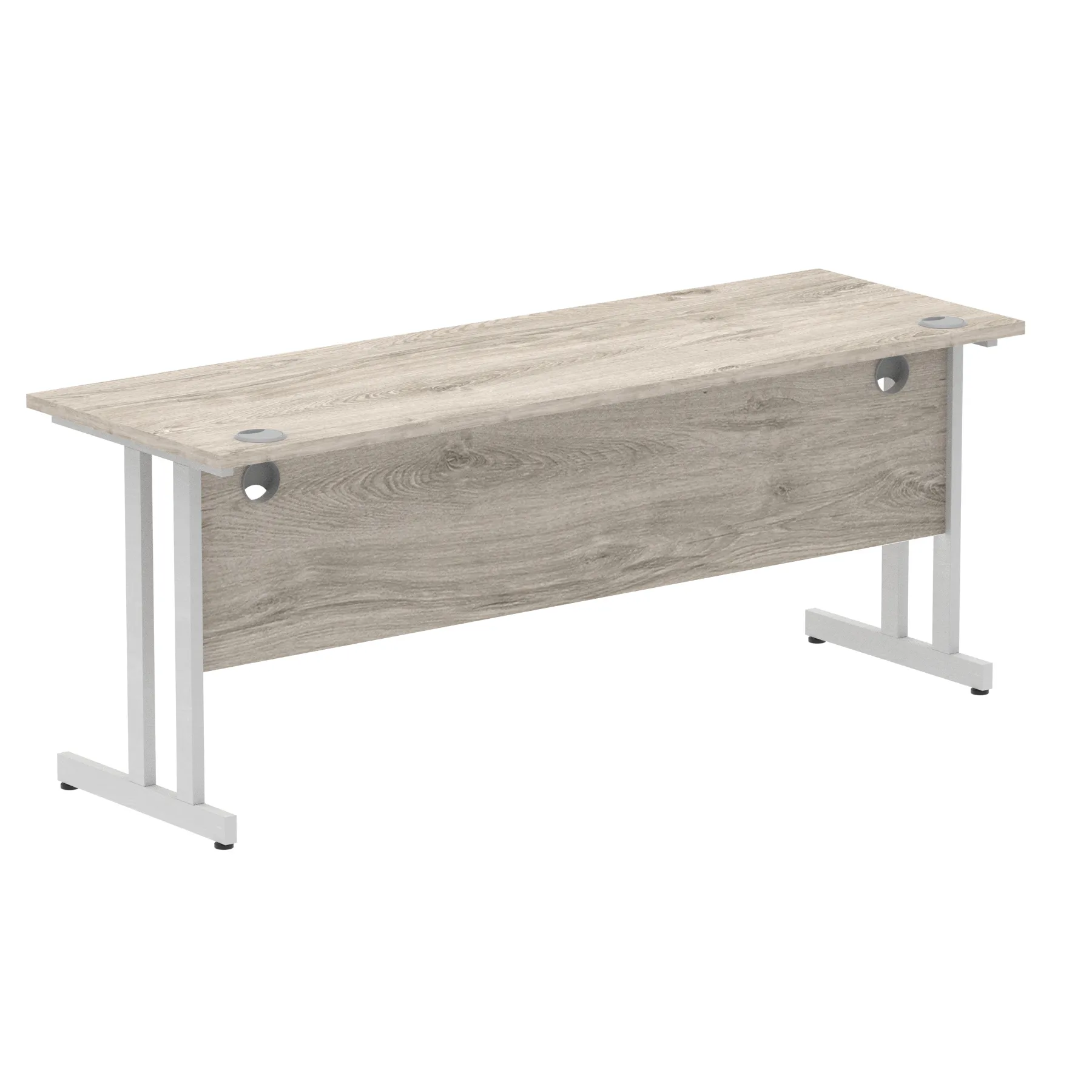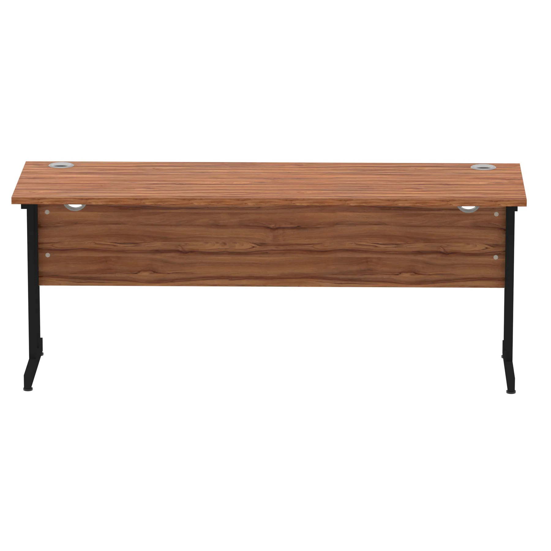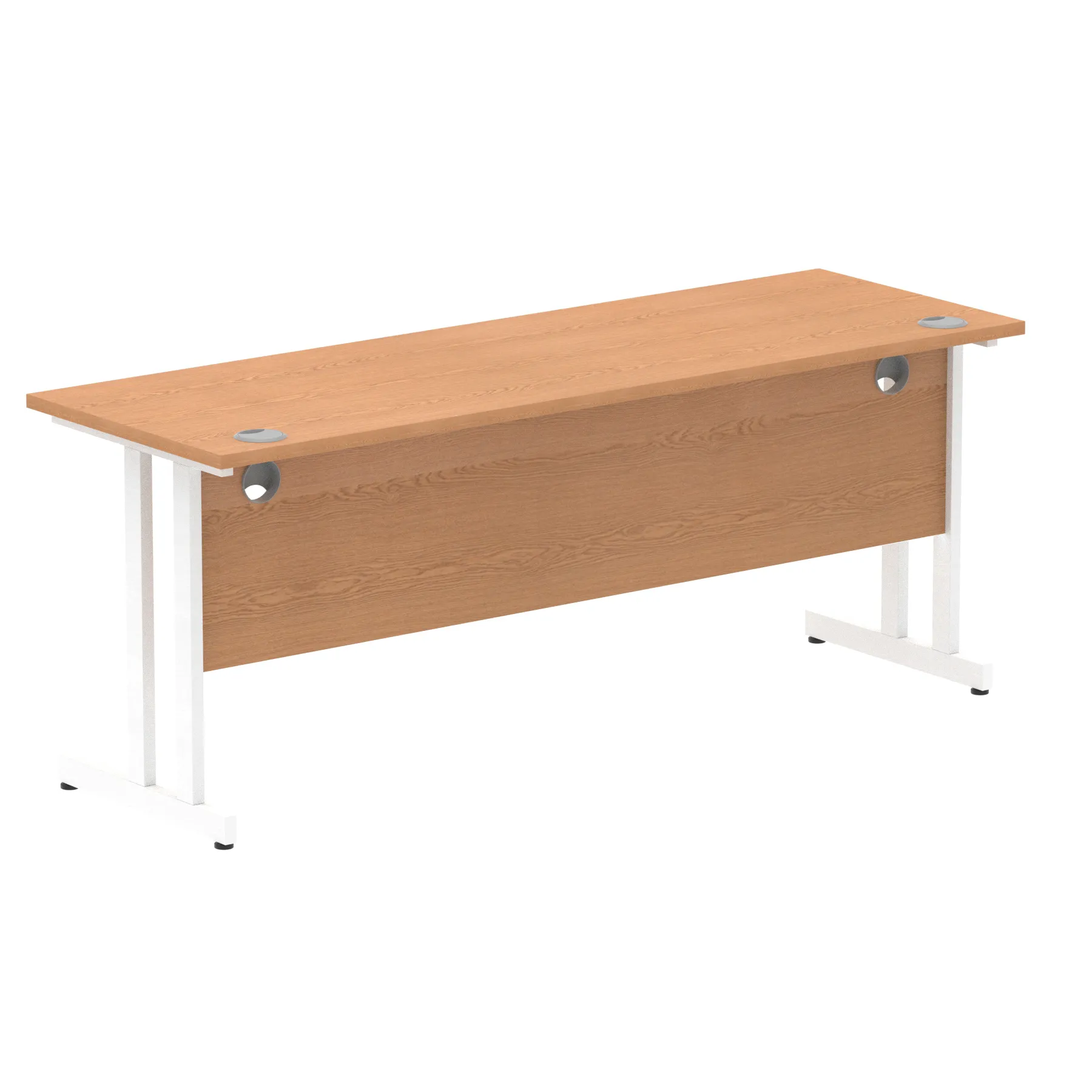 Impulse contract desk | 25mm tops | Heat resistant melamine finish | 18mm modesty panels | 2mm protective abs edging | Silver coated double strut legs | 2 cable ports | Height adjustable feet | Steel to steel fixings | 2 modesty panels slots Deep set modesty panel (5″) allows for compatibility of most screen clamp fittings | Weight Capacity 135Kg