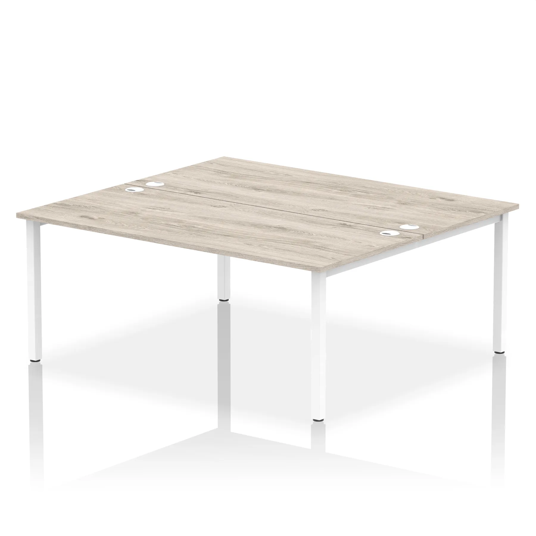 • Conjoinable frame system allows for easy adaptability • Stylish powder coated goal post leg design • Double cable ports for easy cable management • 25mm thick tops with 2mm protective edging • Adjustable Feet • Choice of 7 wood finishes and 3 leg colours • Weight Capacity: 100kg per user