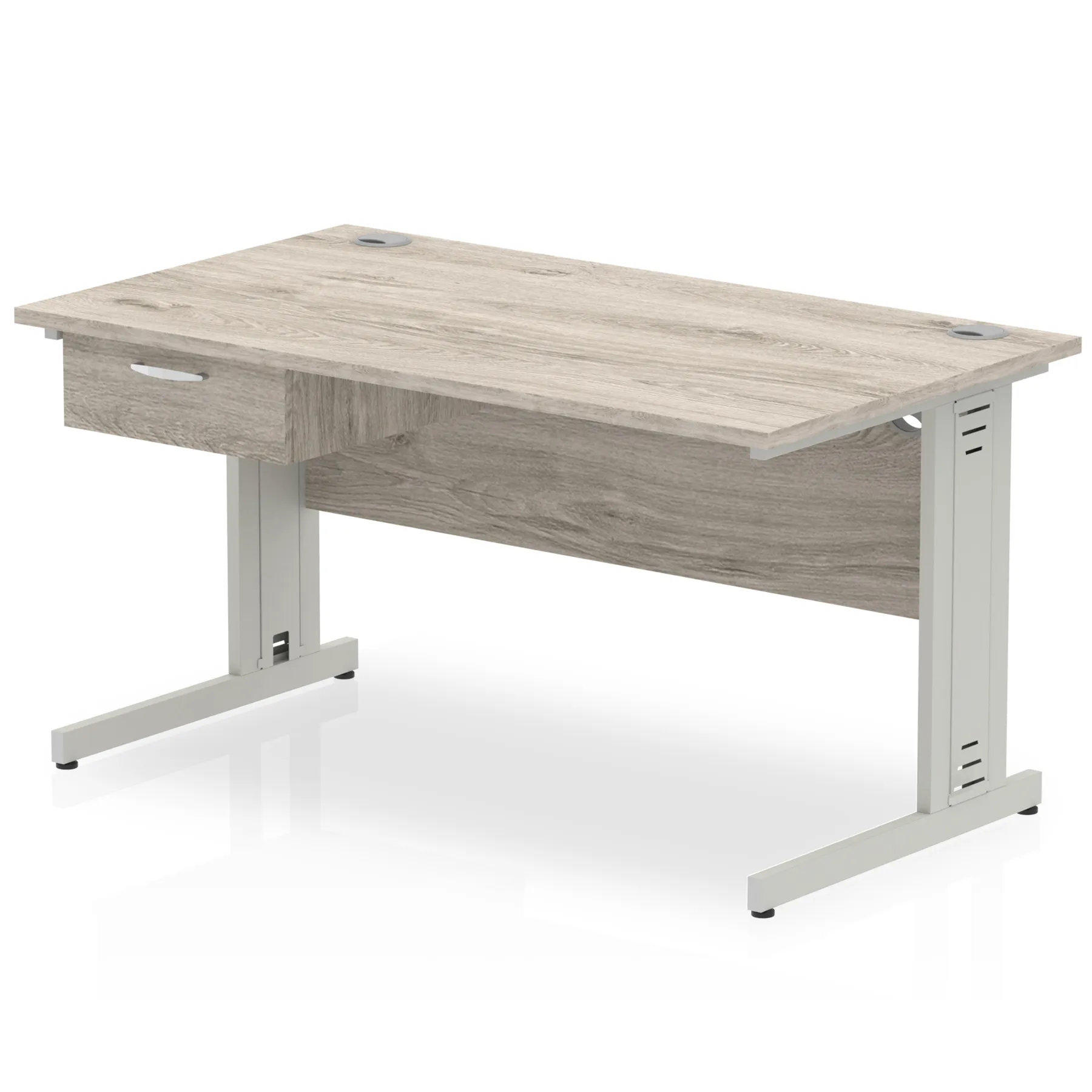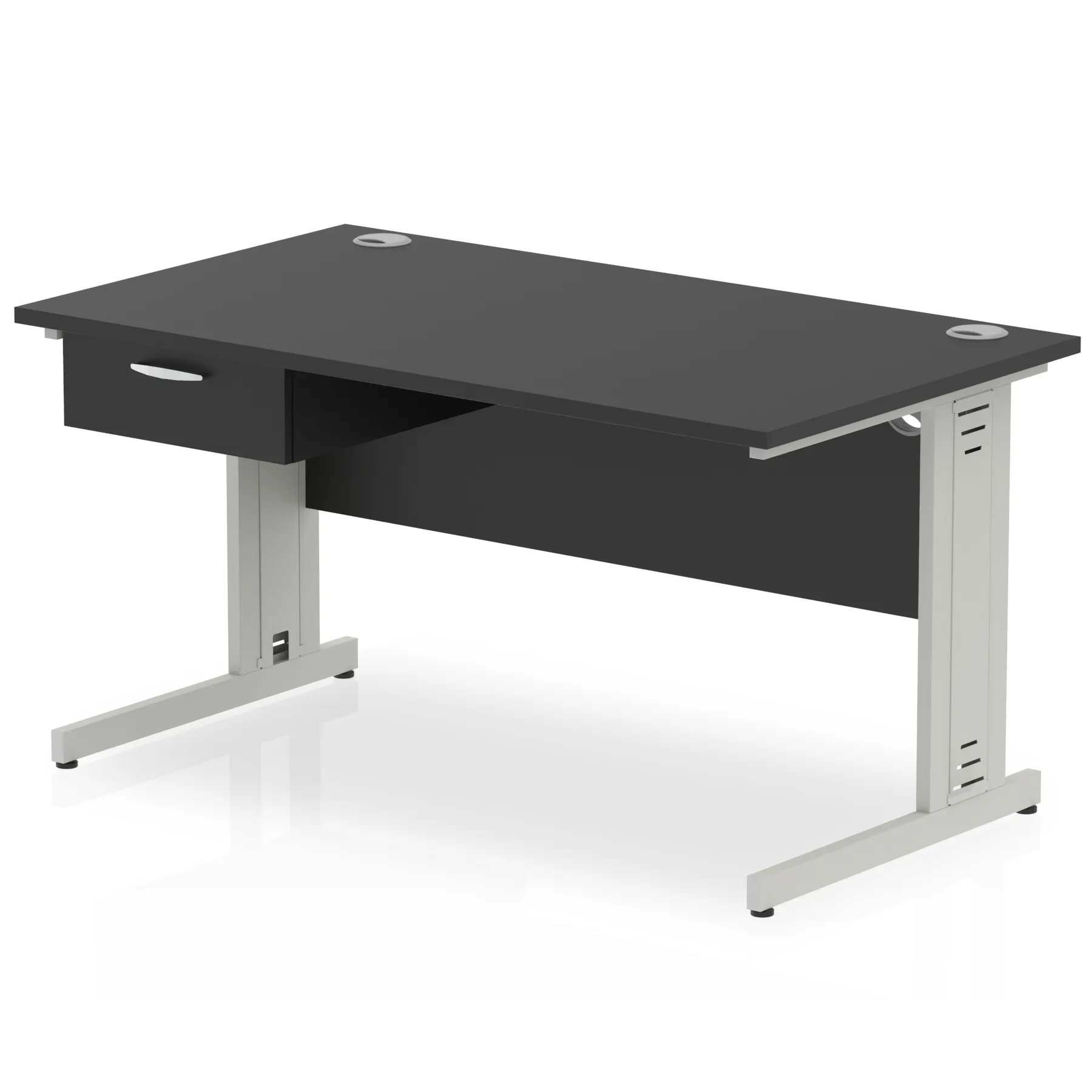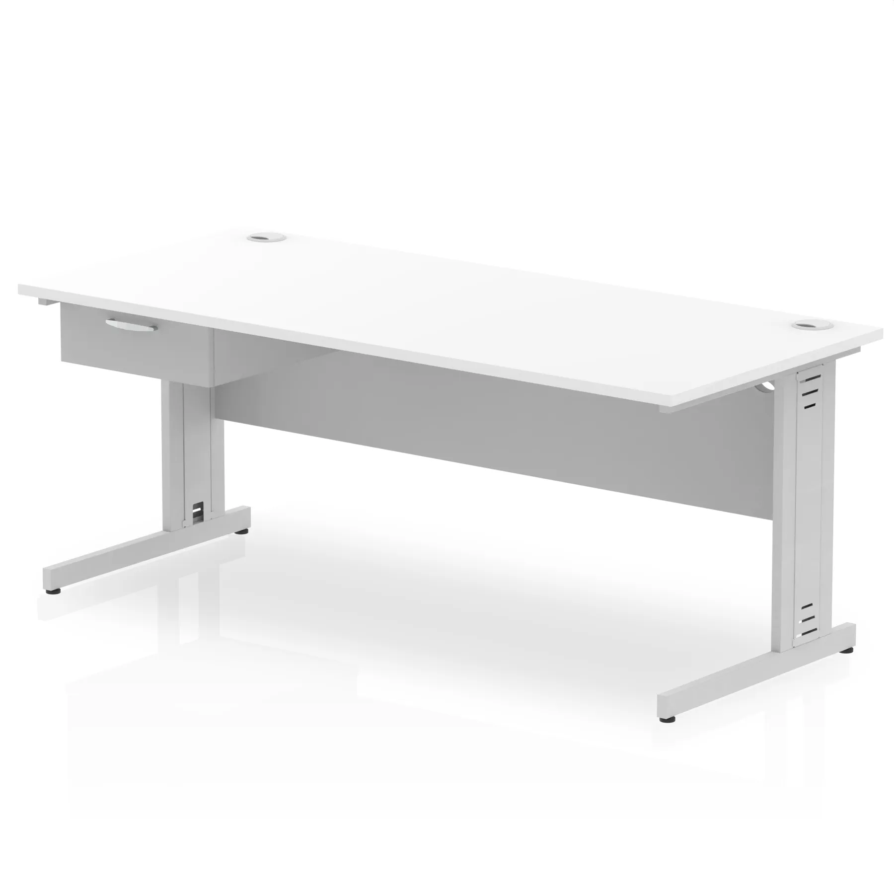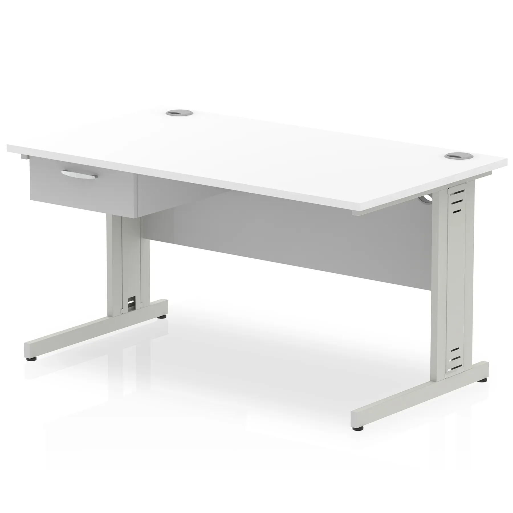 Impulse Cable Managed Straight Desk Silver Frame With Single One Drawer Fixed Pedestal