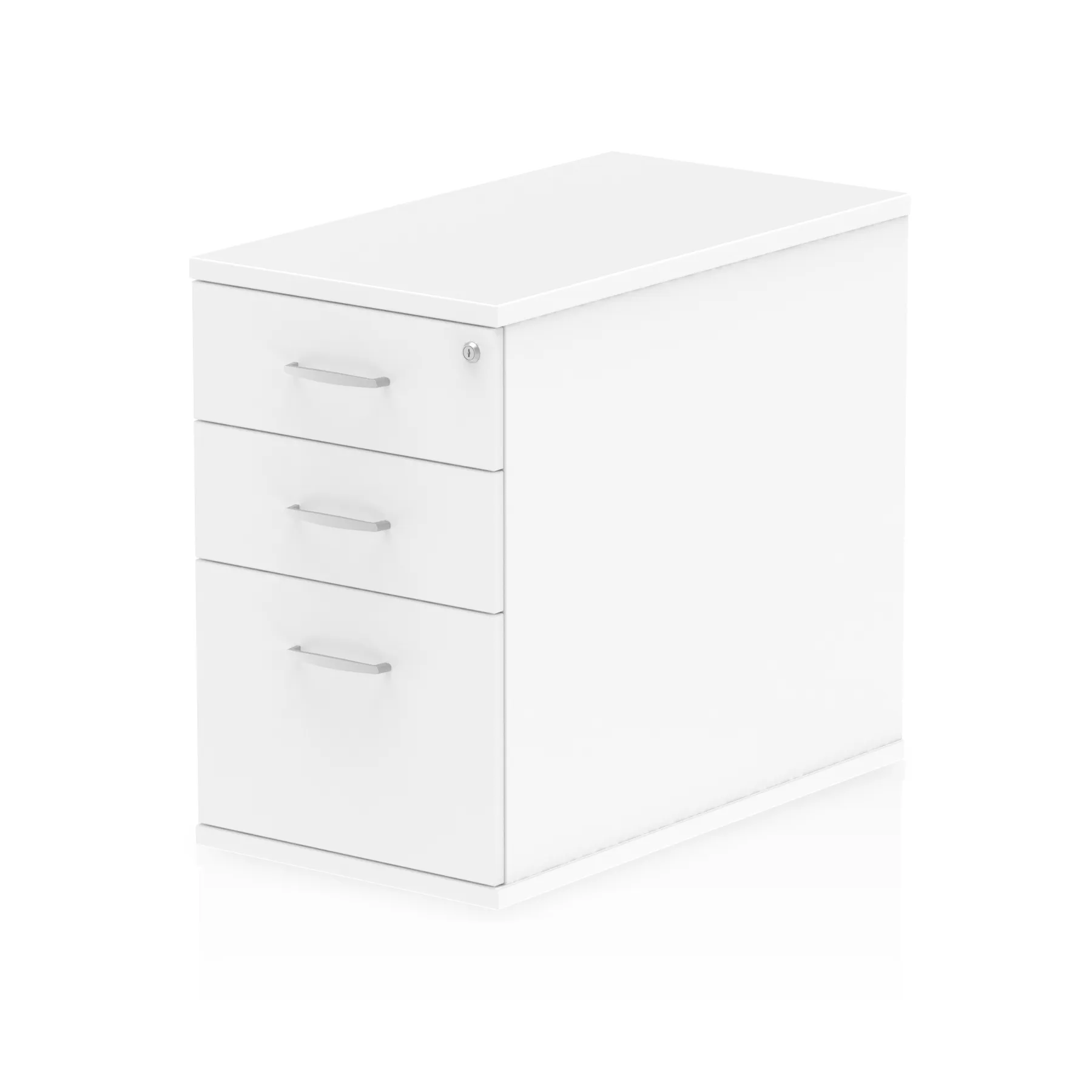 Impulse desk high pedestal | 25mm top | Full 18mm back board | 2mm abs protective edges | Steel handles | Solid box drawer construction | Fits A4 or foolscap filing | Steel to steel fixings | Lockable drawers | Heat resistant beech melamine finish | Extends desk space