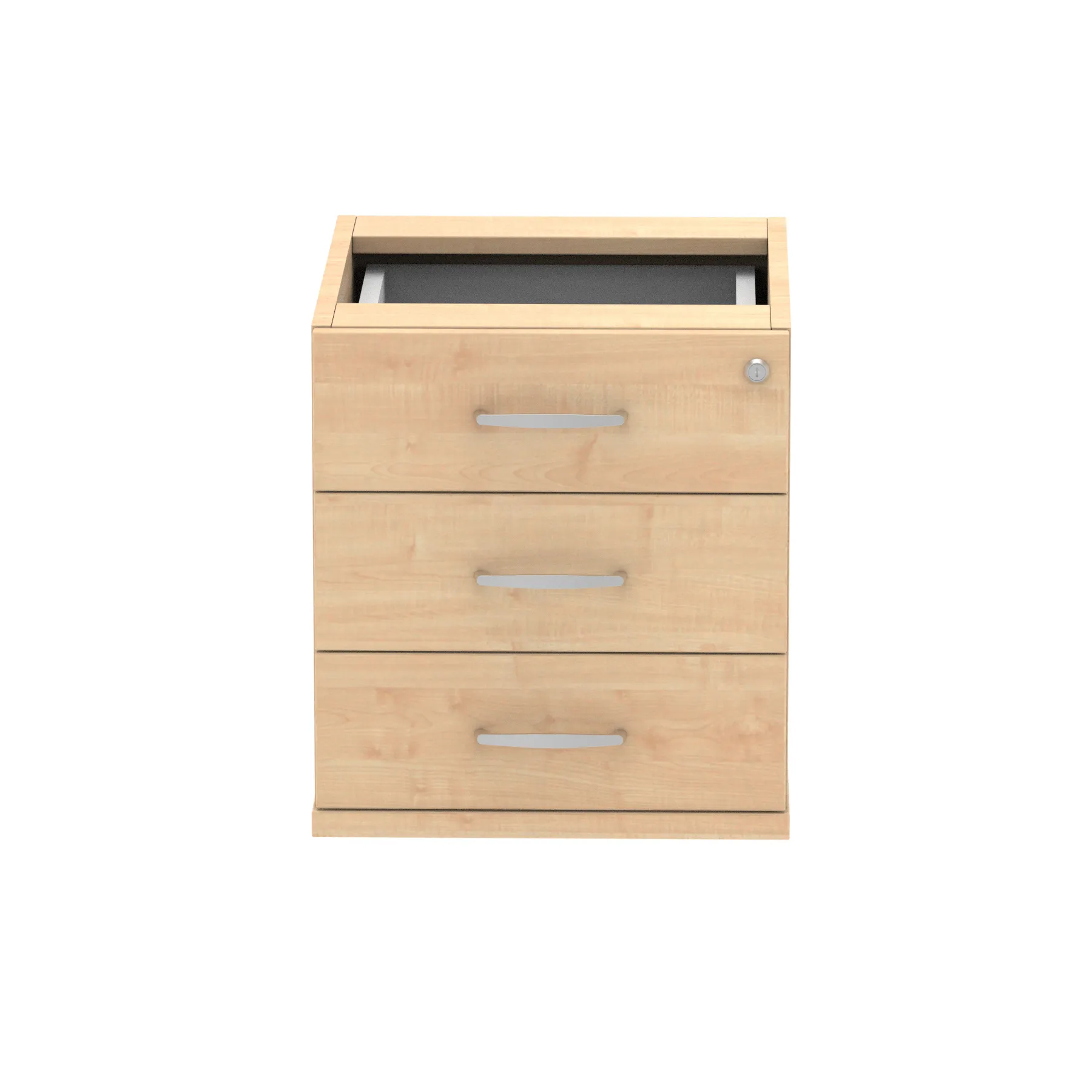 Impulse fixed pedestal | 25mm top | Full 18mm back board | 2mm abs protective edges | Steel handles | Solid box drawer construction | Fits A4 or foolscap filing (Filing rails only available on the 2 drawer variant) | Steel to steel fixings | Lockable drawers | Heat resistant Beech melamine finish