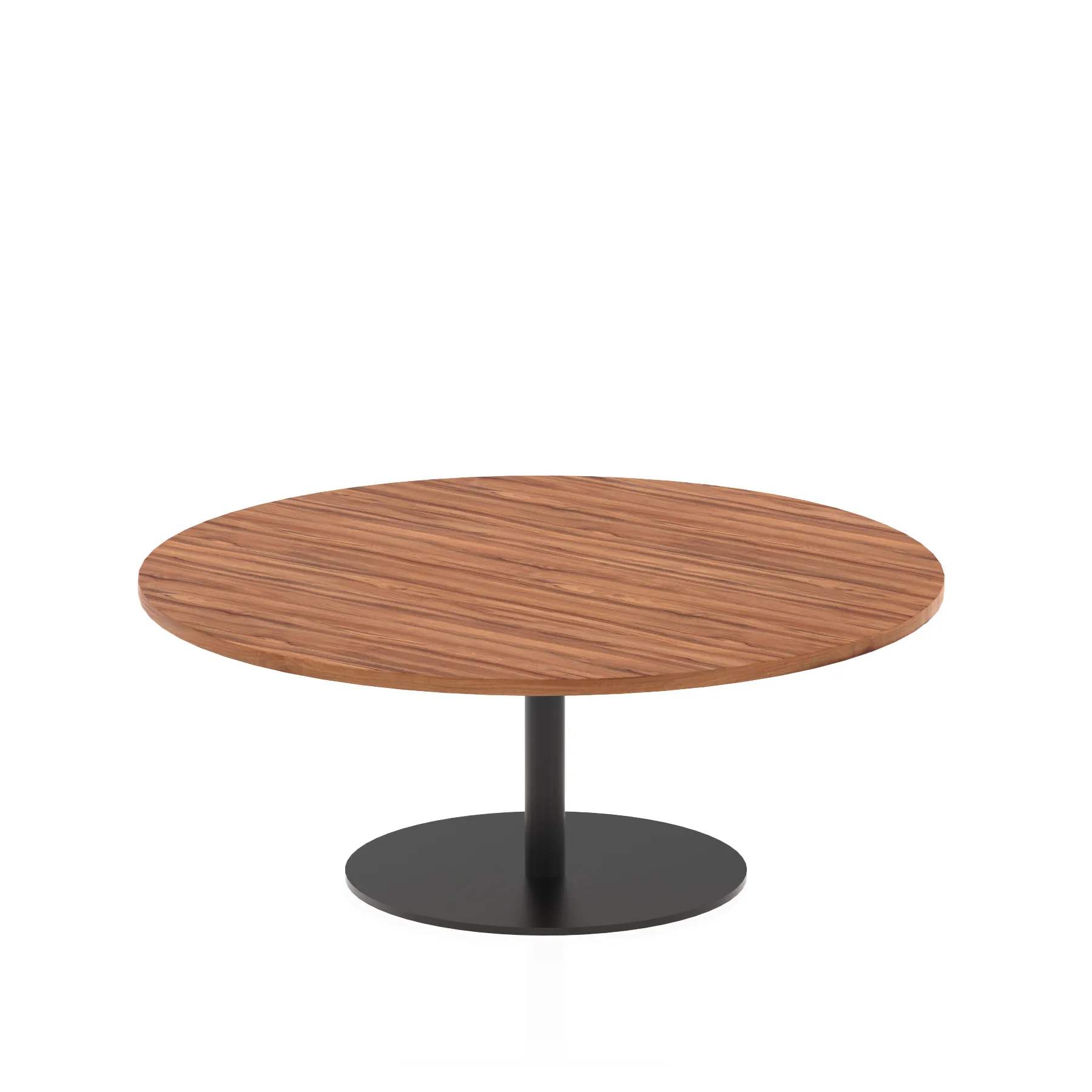 25mm thick desk top profile | Brushed stainless steel effect circular base (580mm diameter) | Brushed stainless steel pillars (76mm diameter) | Weighted base provides stability | Two part bolted frame system
