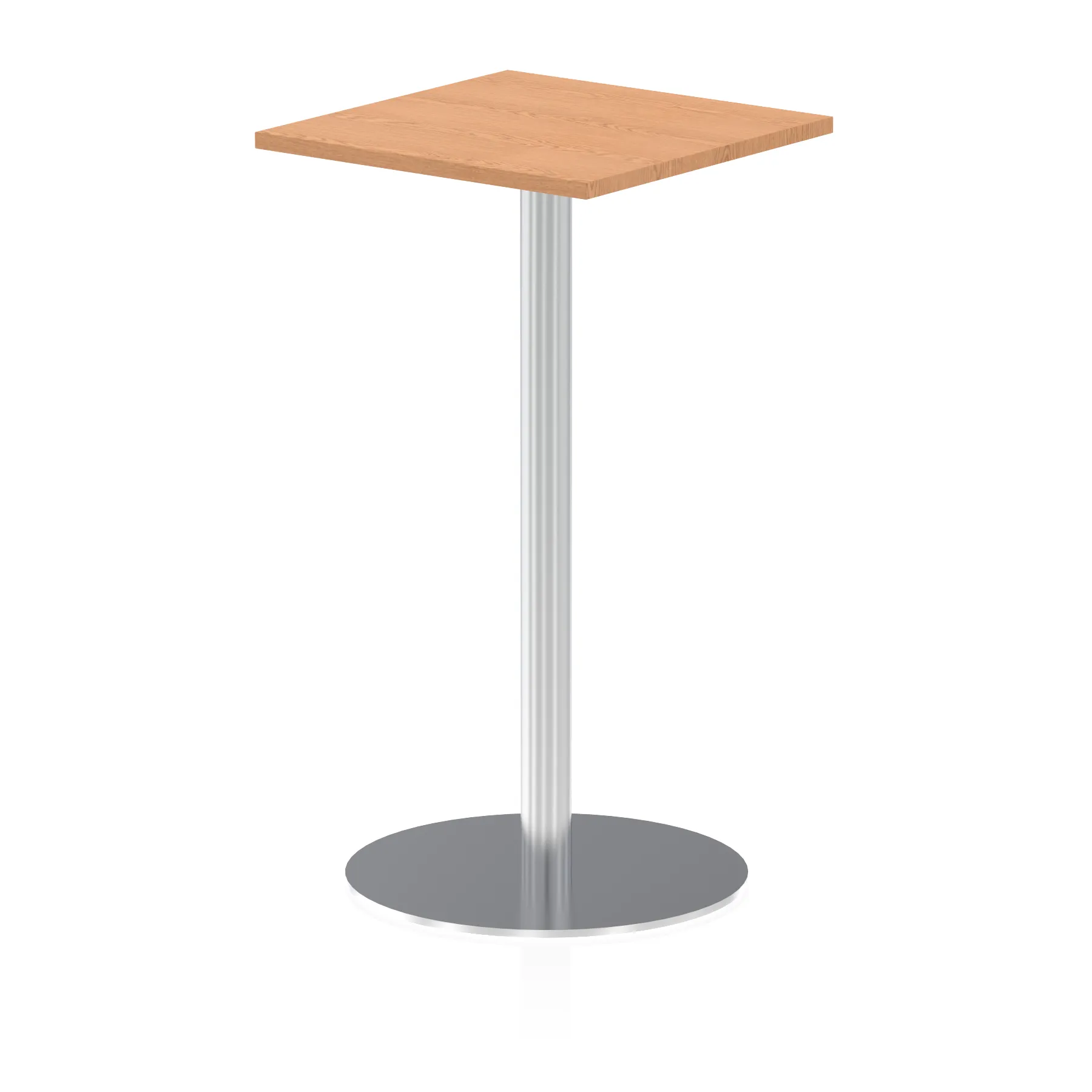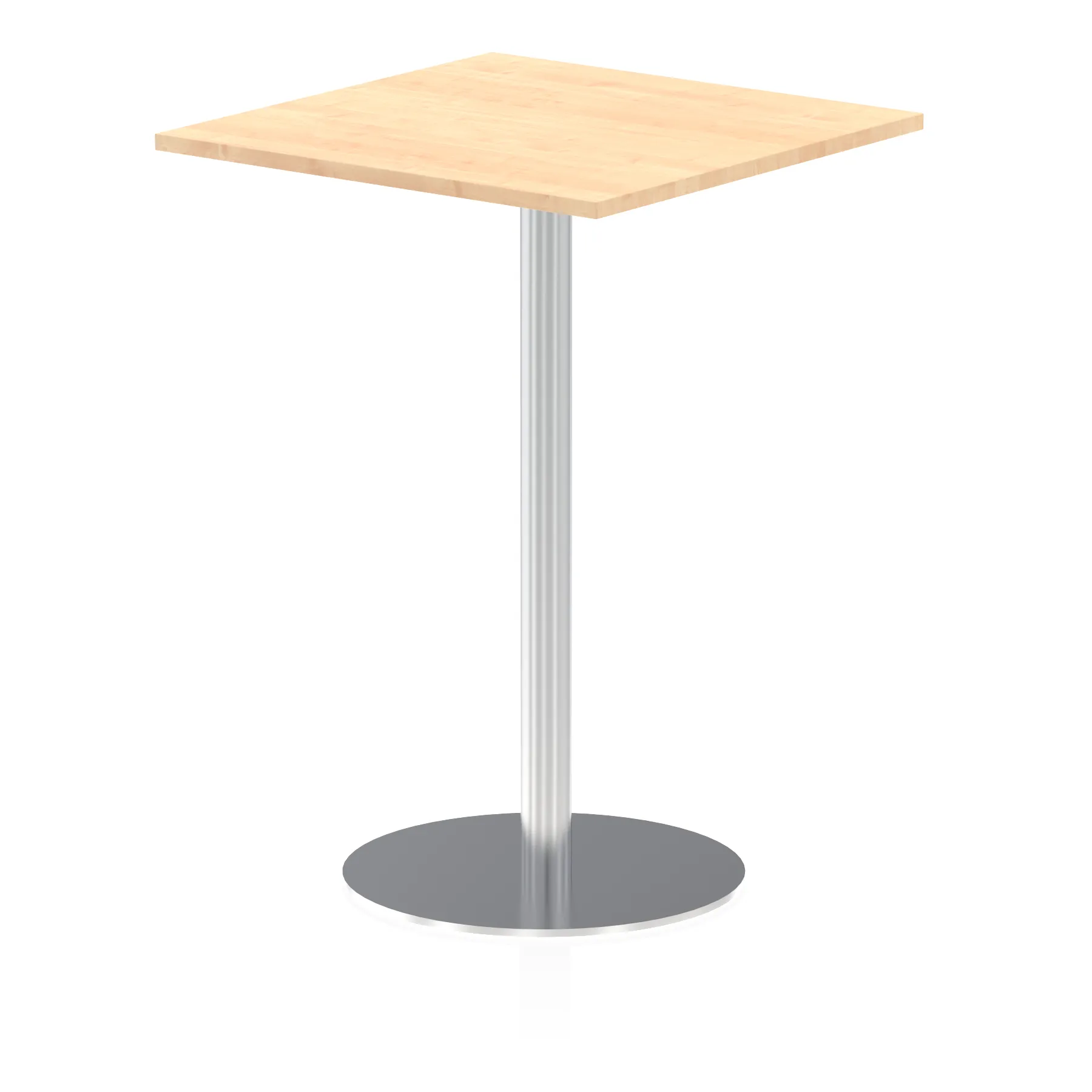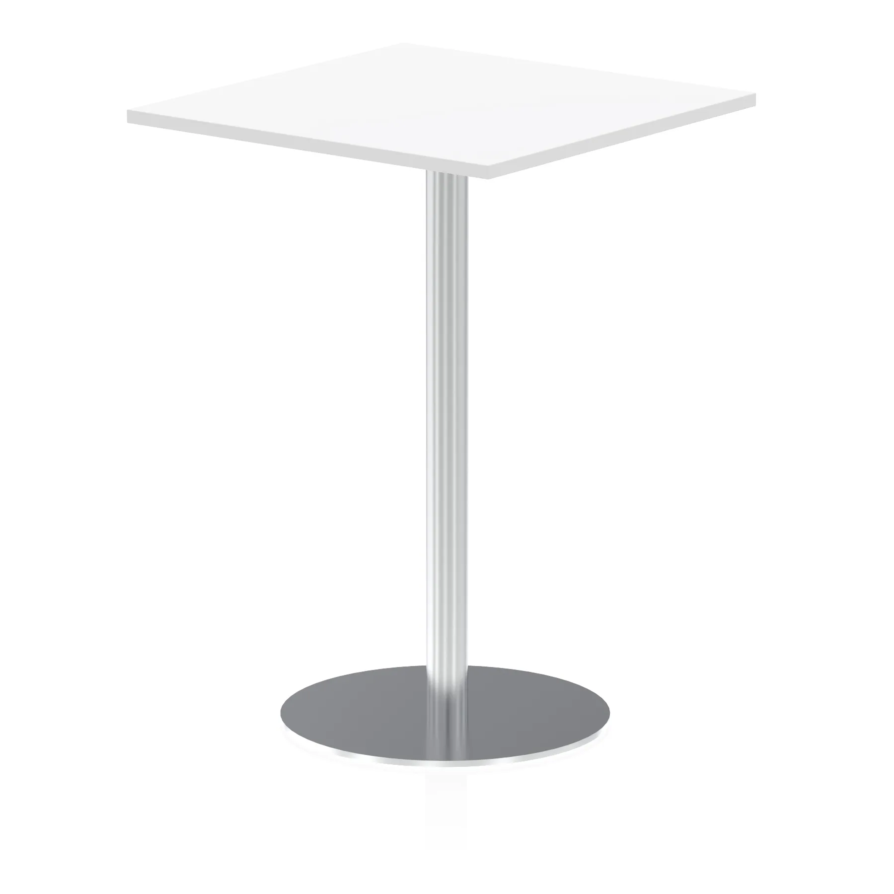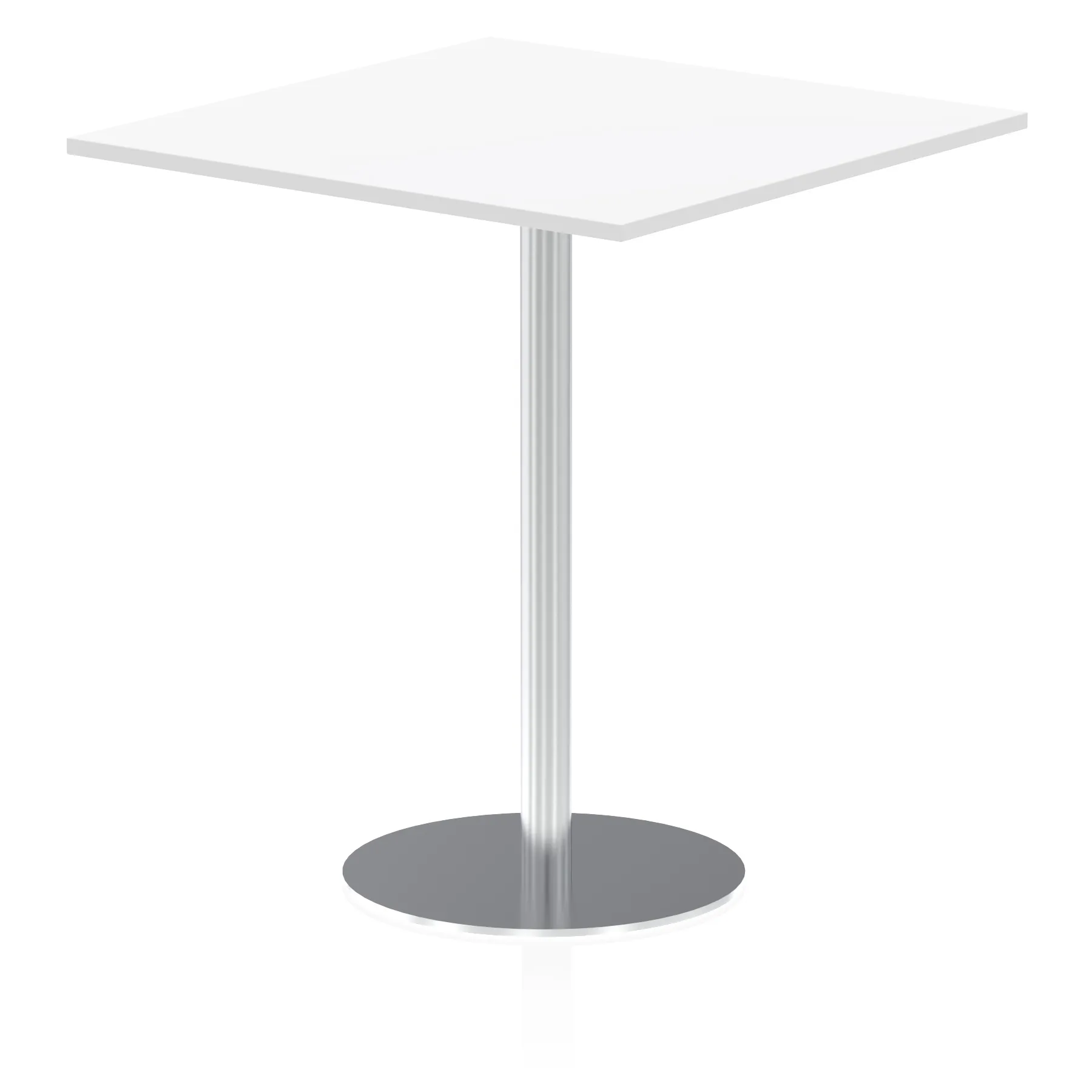 25mm thick desk top profile | Brushed stainless steel effect circular base (580mm diameter) | Brushed stainless steel pillars (76mm diameter) | Weighted base provides stability | Two part bolted frame system