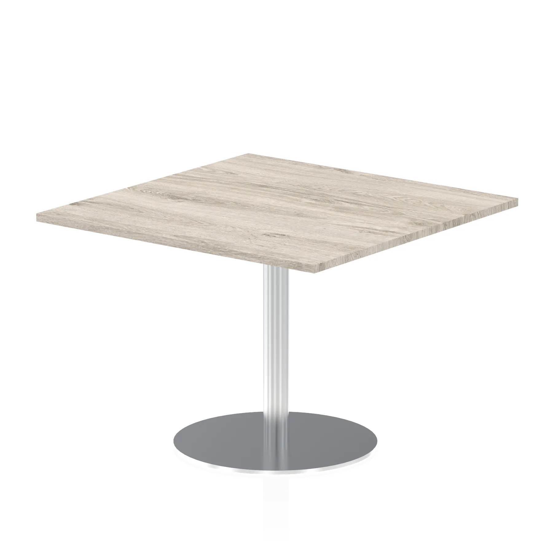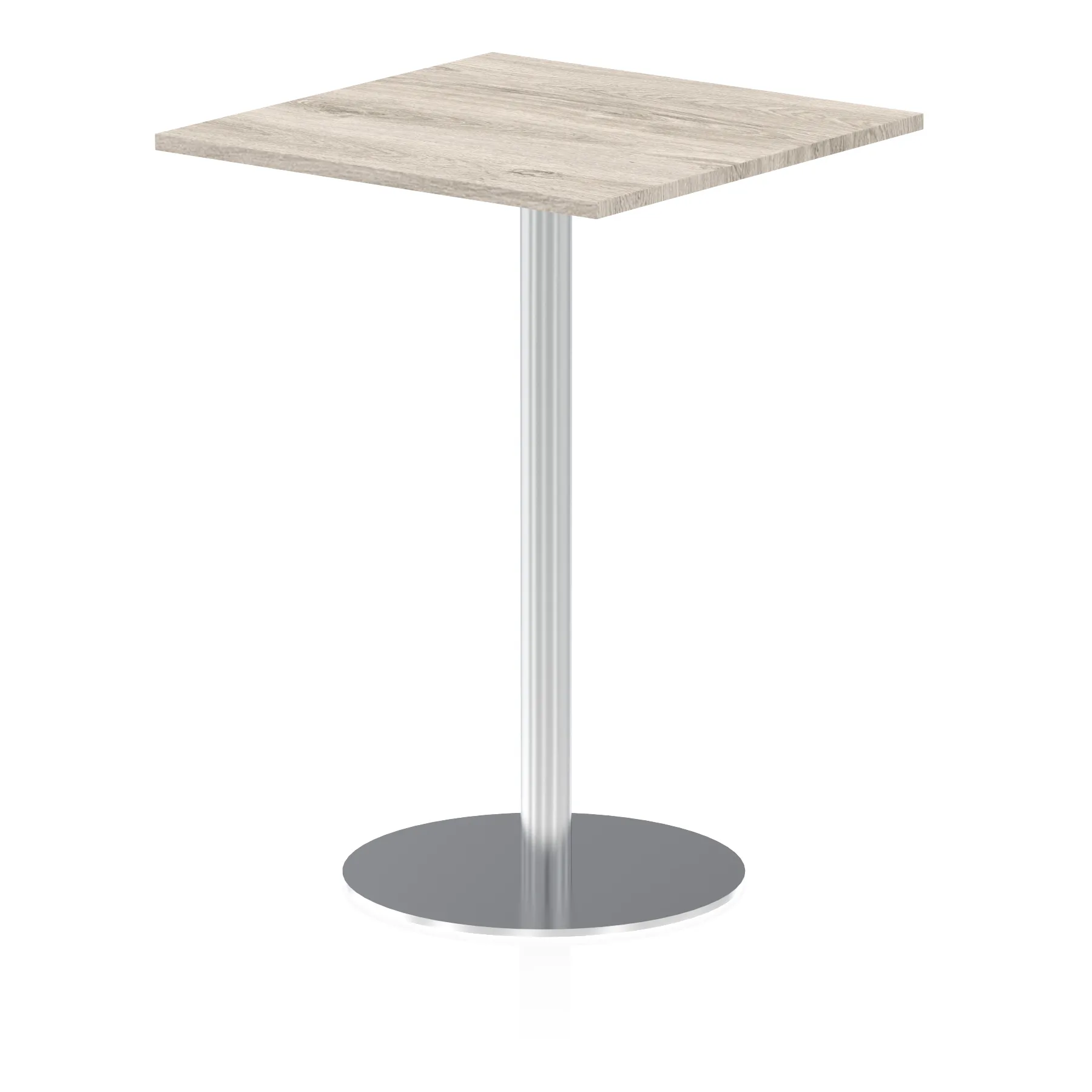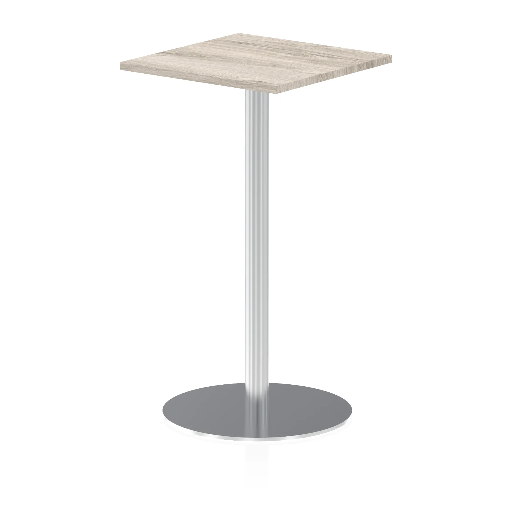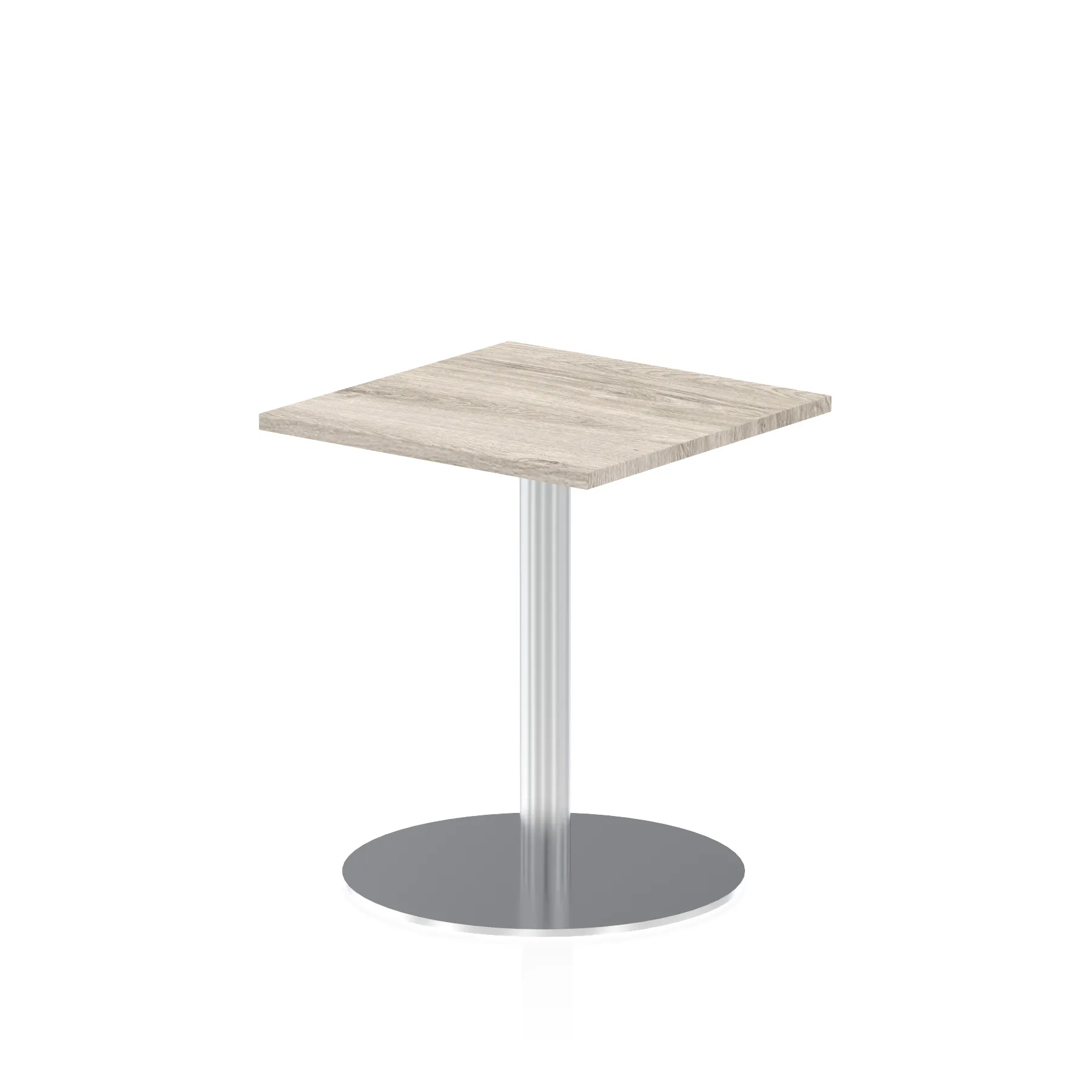 25mm thick desk top profile | Brushed stainless steel effect circular base (580mm diameter) | Brushed stainless steel pillars (76mm diameter) | Weighted base provides stability | Two part bolted frame system