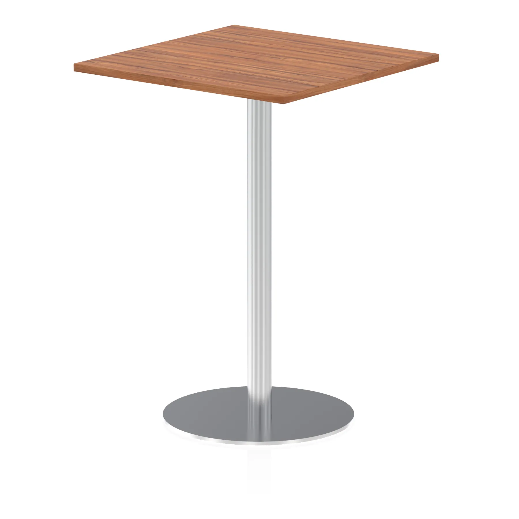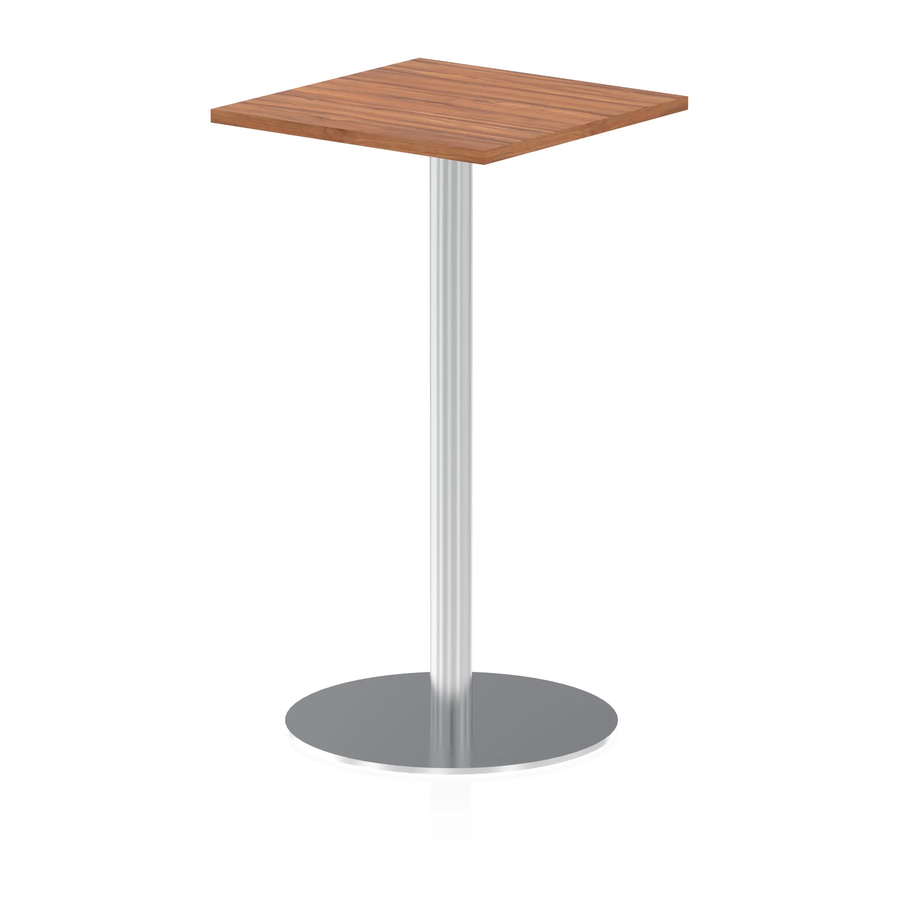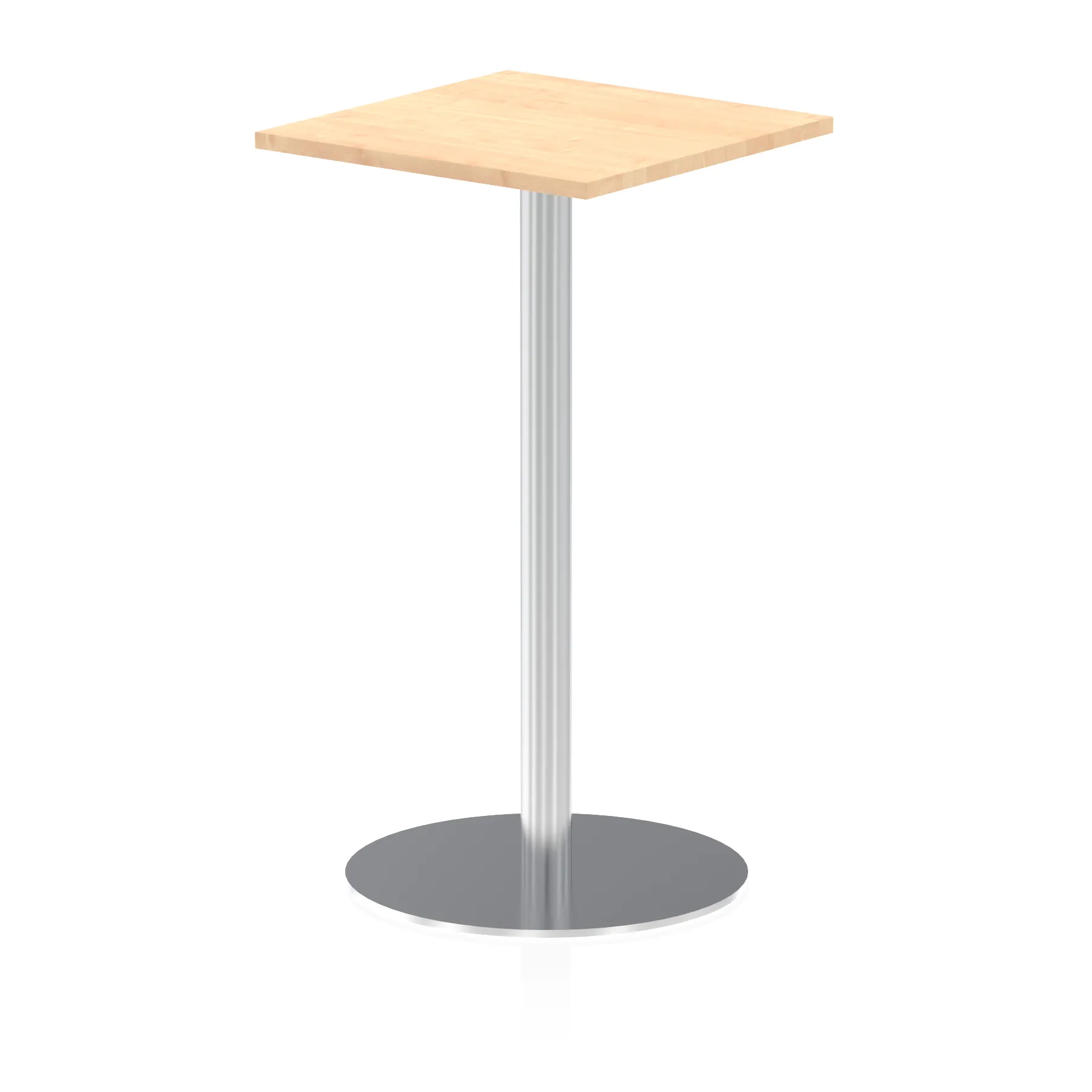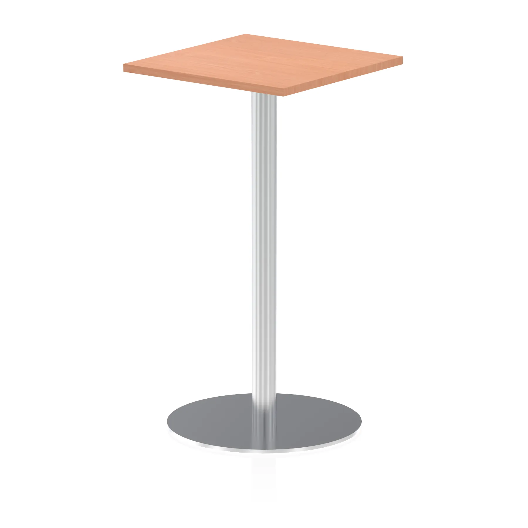 25mm thick desk top profile | Brushed stainless steel effect circular base (580mm diameter) | Brushed stainless steel pillars (76mm diameter) | Weighted base provides stability | Two part bolted frame system