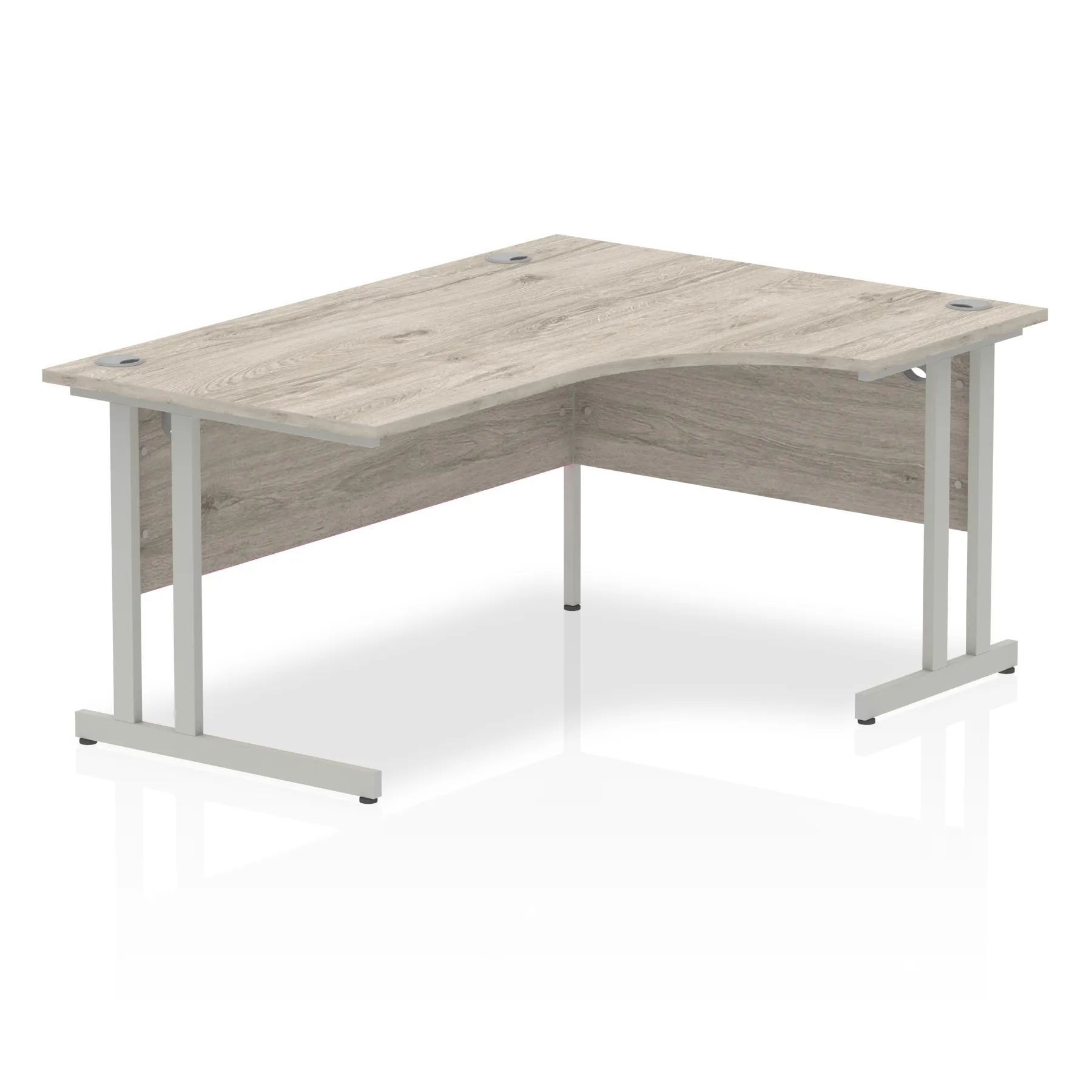 Impulse contract 1600 wide crescent desk | 25mm tops | Heat resistant beech melamine finish | 18mm modesty panels | 2mm protective abs edging | Silver coated double strut legs | 3 cable ports | Height adjustable feet | Steel to steel fixings | 3 modesty panels slots | 600 deep | Deep set modesty panel (5″) allows for compatibility of most screen clamp fittings | Weight Capacity 135Kg