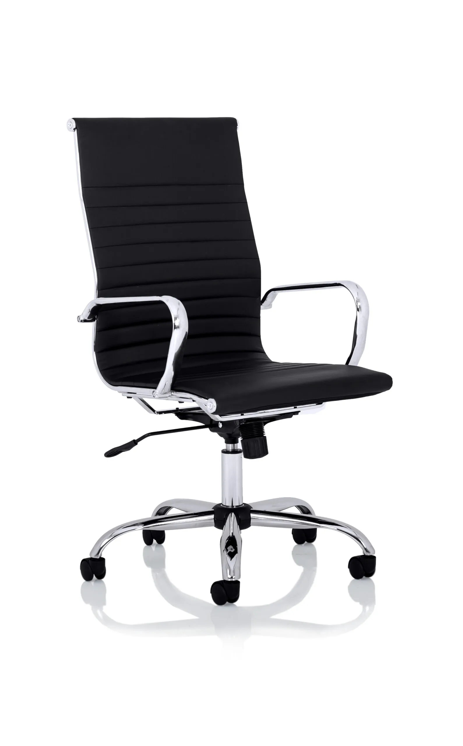 • Classically Italian inspired exec armchair • Curved seat and back for comfort • Chrome detailing on frame, base and arms • Stitching detail • Single lever tilt and lock mechanism • Tension controlled tilt